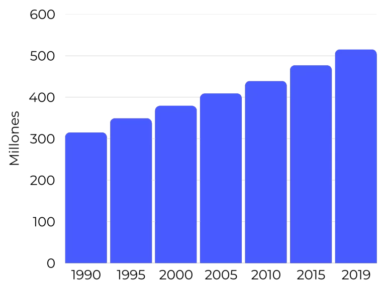 Cantidad mundial de personas con ansiedad, de 1990 a 2019